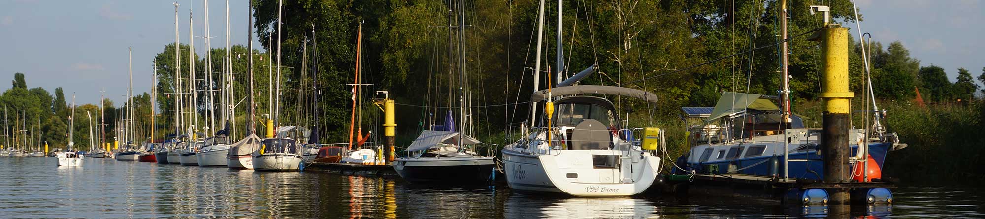 In der Segelsaison von April bis Oktober liegt Baby Blue beim Verein Bremer Segelfreunde an der Lesum. Ein idyllisches Plätzchen im Grünen. Zweimal am Tag geht’s rauf und runter, die Lesum ist ein Tidengewässer. Manchmal strömt es ganz ordentlich. Meist fährt man mit Hochwasser raus und kommt mit der Flut zurück.
